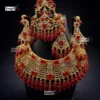 Collar Bridal Necklace Set with Bindiya and Jhoomar is an essential component of a bride’s ensemble, elevating her overall look on her special day. The set typically includes a combination of pieces that complement the bride’s wedding dress and personal style, creating a harmonious, elegant aesthetic. These sets often consist of a necklace, Jumkha, and Bindhia, a tikka (headpiece) , each meticulously designed to enhance the bride’s beauty.